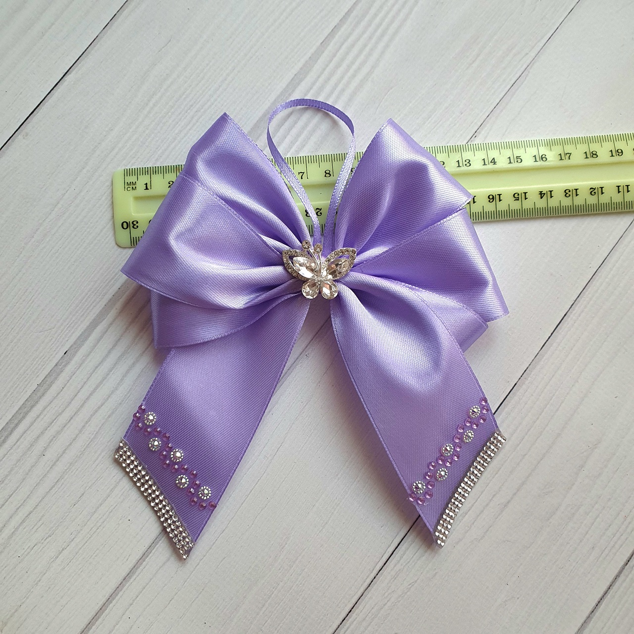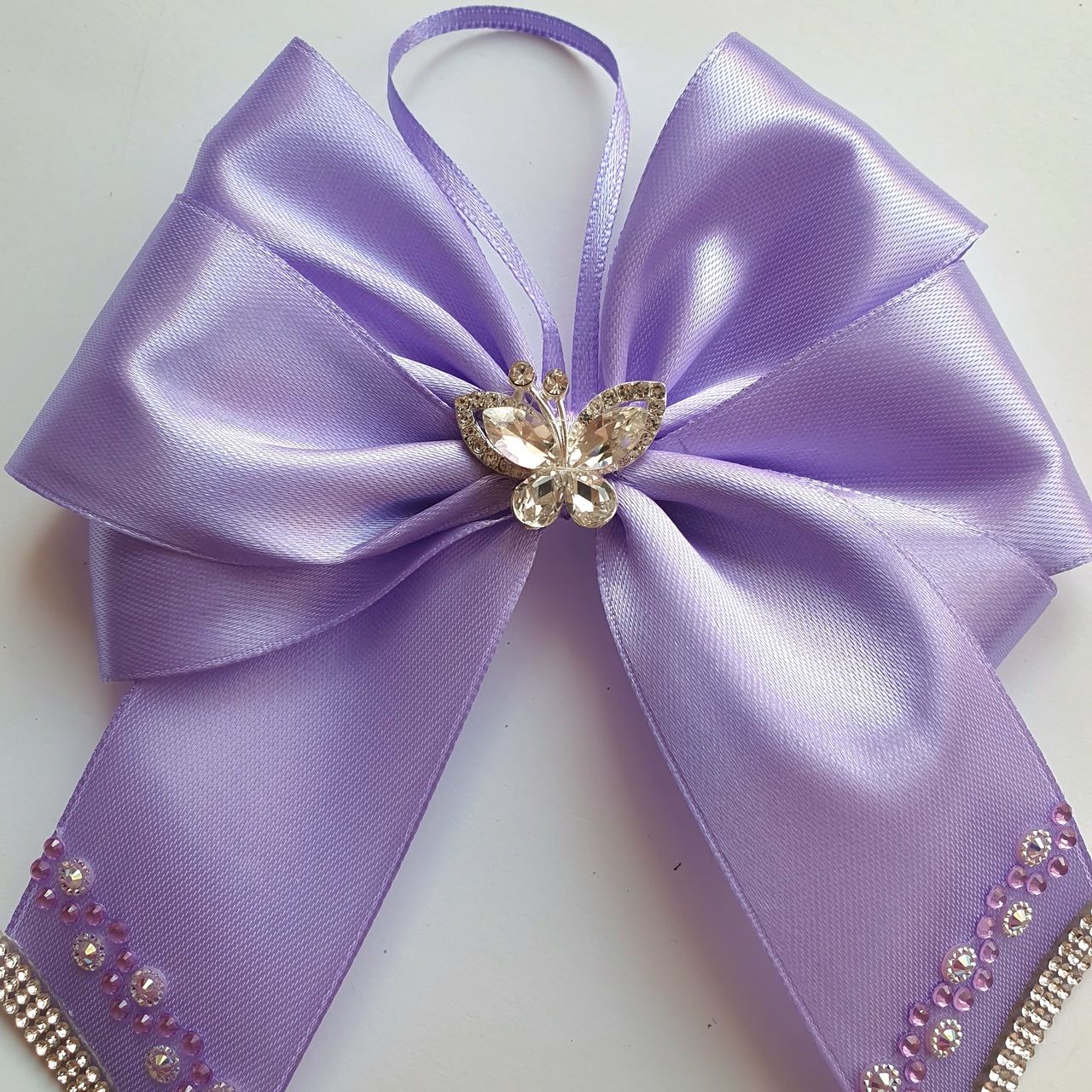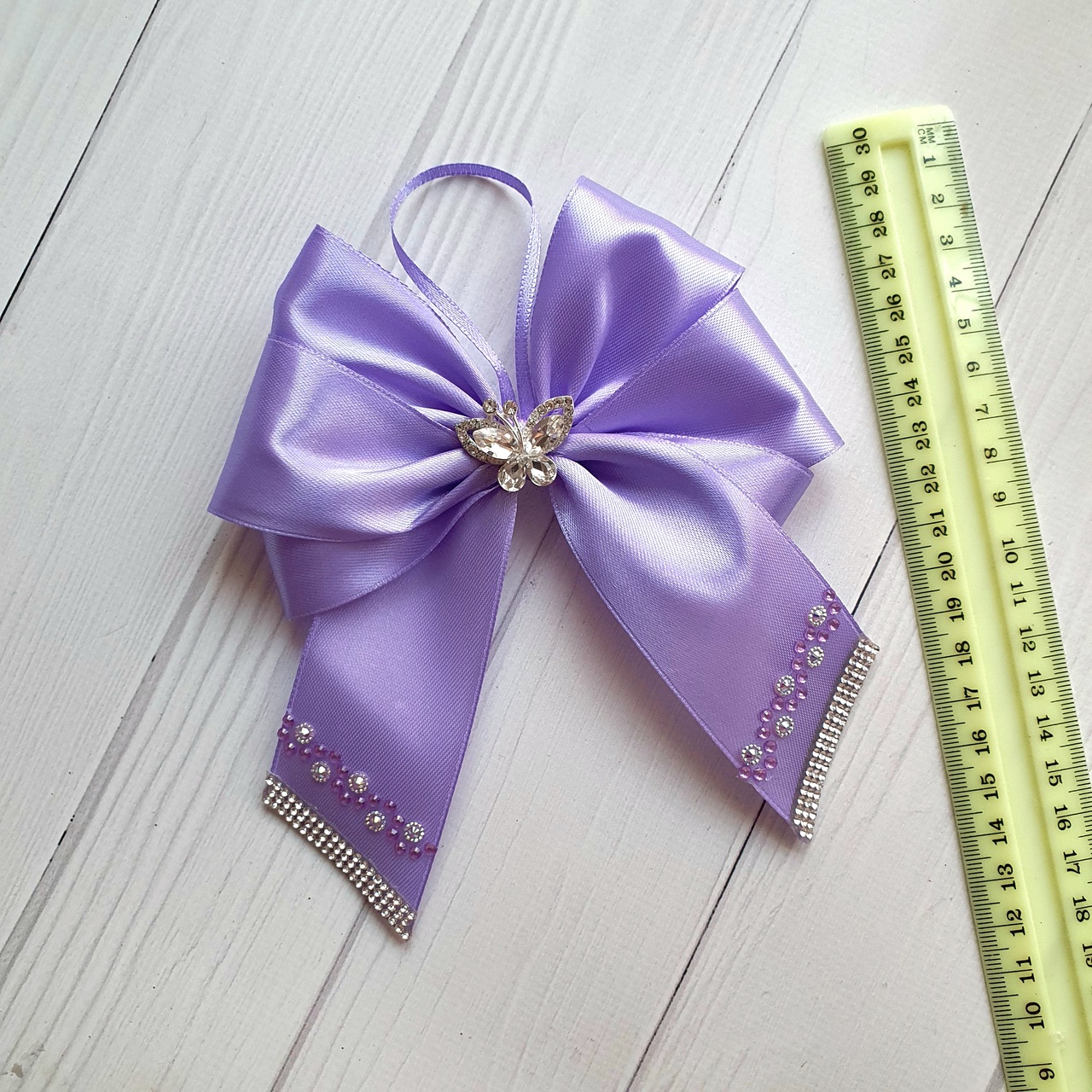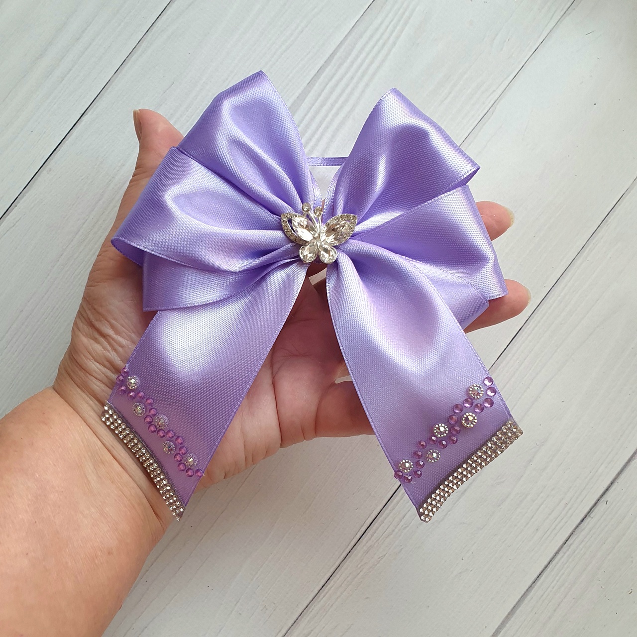 ✨ Bring soft elegance to your holiday décor with this delicate set of 9 lavender silk Christmas bows. Each bow features a sparkling butterfly brooch made of clear stones. Additionally, the tails shine with shimmering rhinestones for a festive finish.