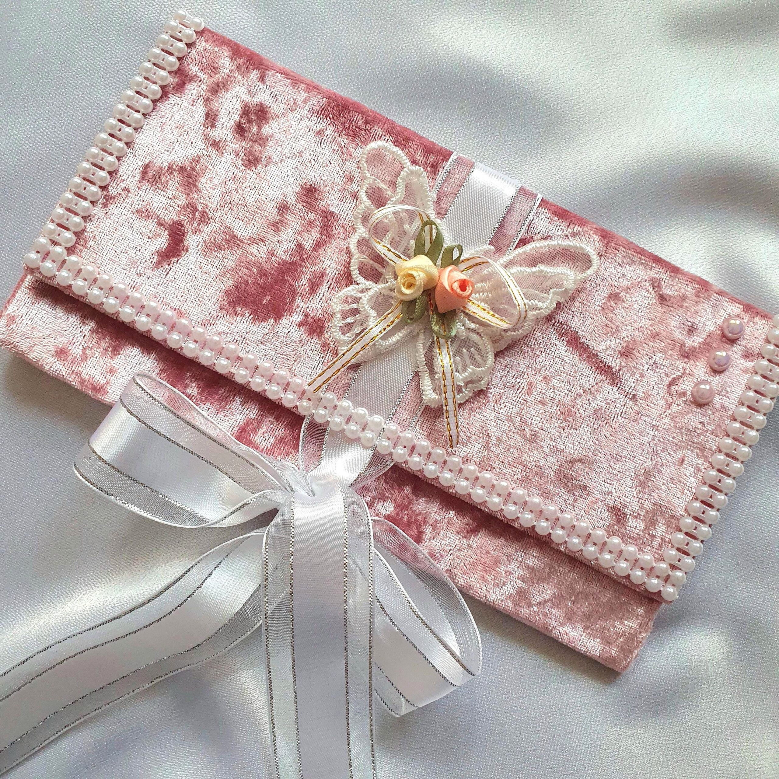 First, it includes a beautiful handcrafted greeting card with sparkling details. In addition, there is a soft velvet money envelope decorated with a delicate bow and butterfly. Also, the set comes with a stylish gift box. This lets you present your gift without extra wrapping. 🎁