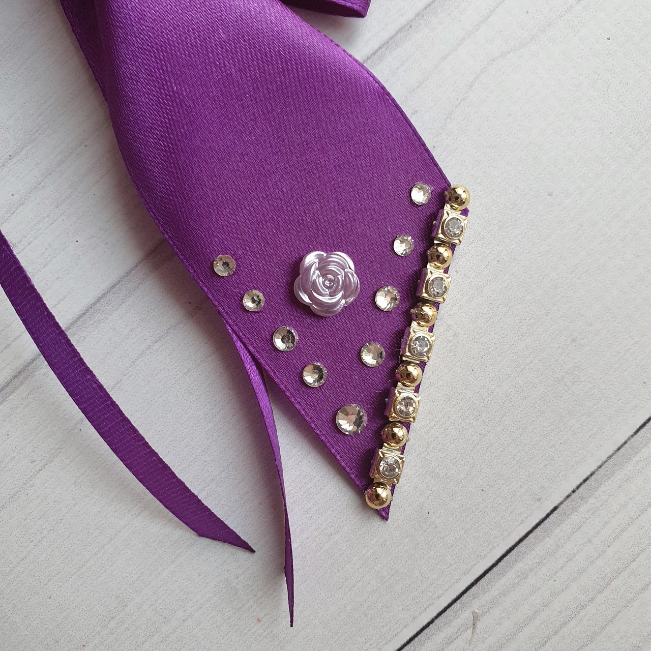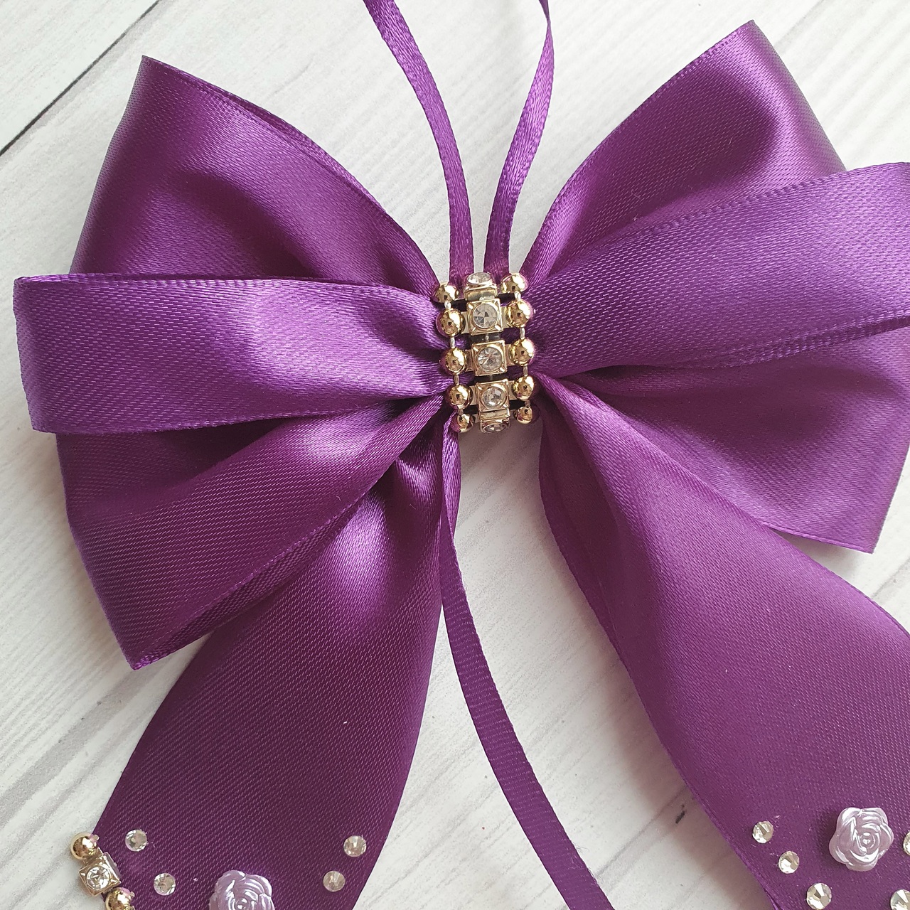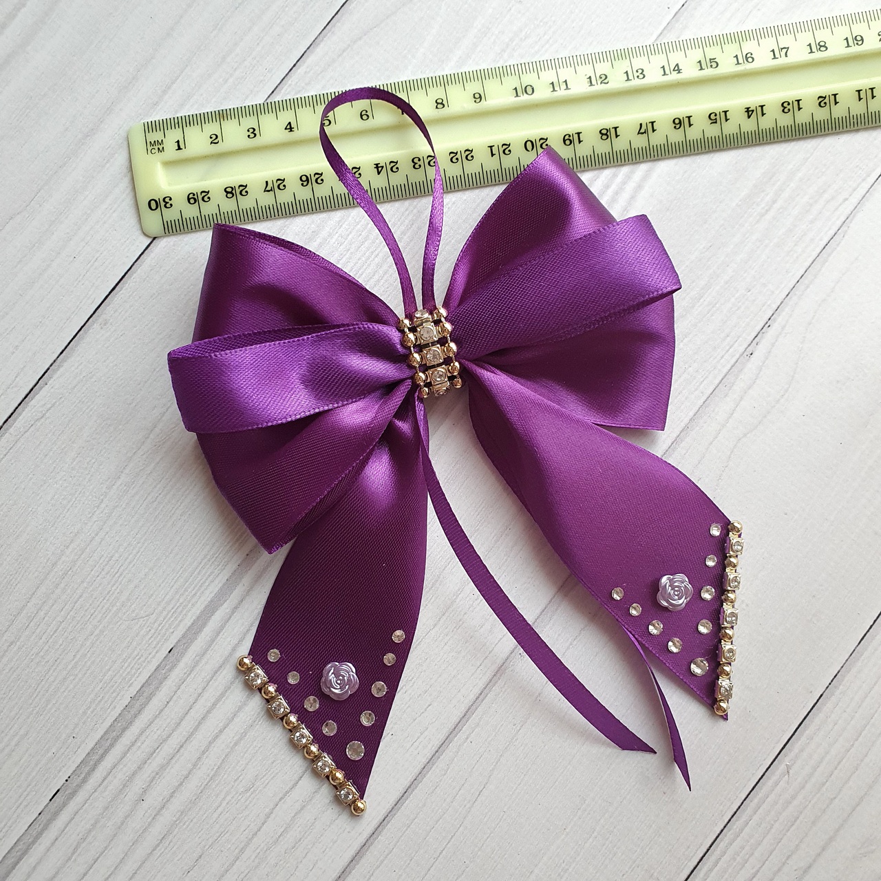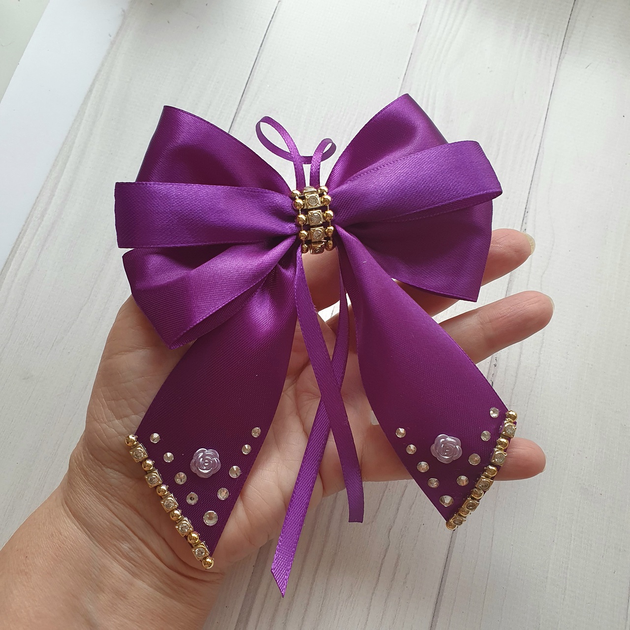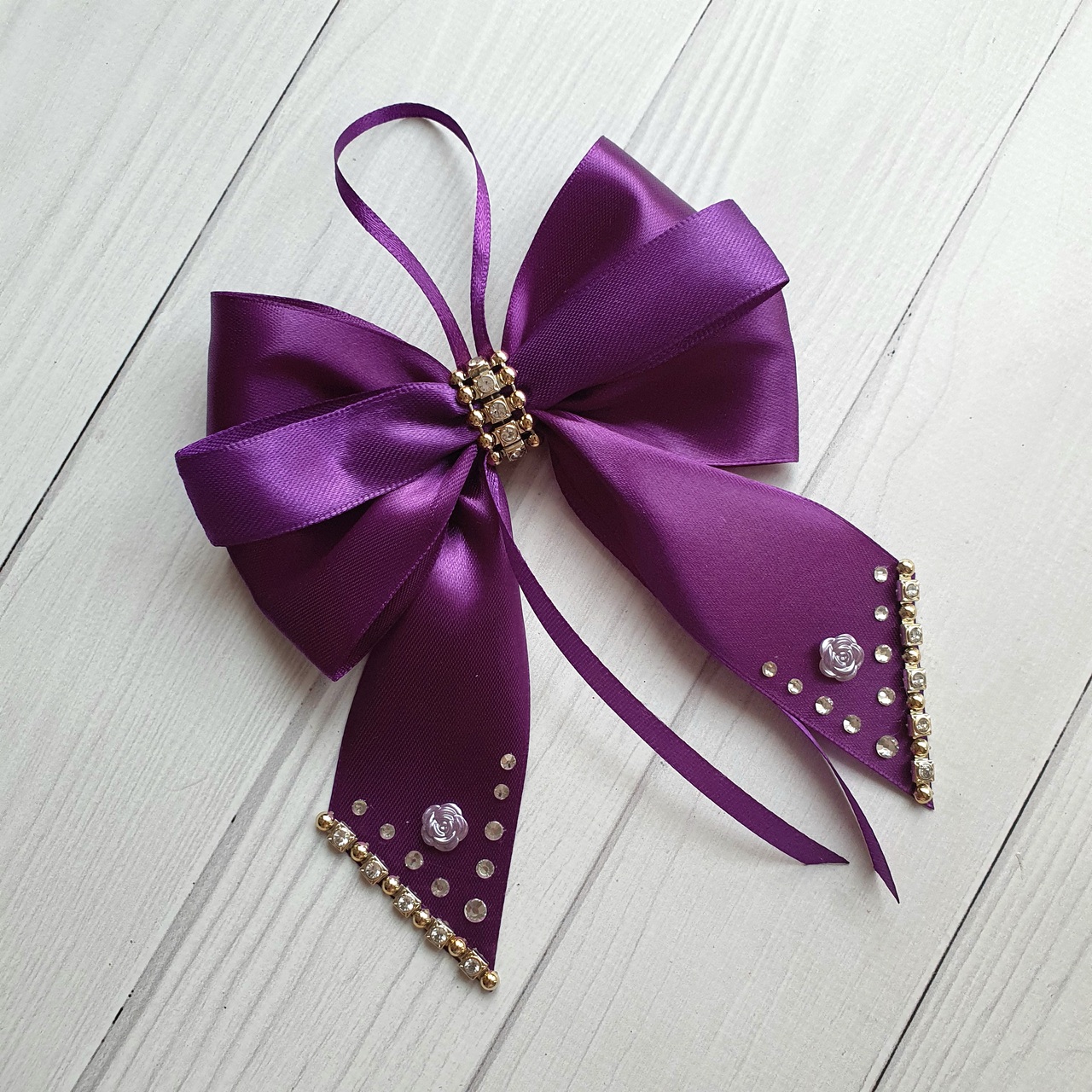 ✨ Step into a world of festive magic with this elegant set of 10 purple silk Christmas bows. We handcraft each bow from luxurious satin ribbon in a rich purple shade. Additionally, sparkling rhinestones reflect Christmas lights and enhance the festive glow.